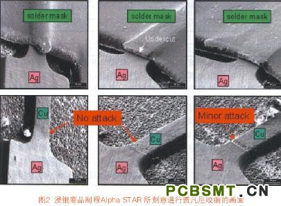 相關(guān)因素中又以銀層厚度最為關(guān)建,務(wù)須將銀層厚度盡可能的減低。其次是前處理的微蝕不可讓銅面太過粗糙,而銀厚度分布的均勻性也是重點(diǎn)之一。至于銀層中的有機(jī)物含量,則可能從多點(diǎn)取樣銀層純度分析中而反向得知,其中純銀含量不可低于90%之原子比。
