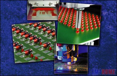 a)刮膠型:通過鋼網印刷涂刮方式進行施膠。這種方式應用最廣,可以直接在錫膏印刷機上使用。鋼網開孔要根據零件的類型,基材的性能來決定,其厚度和孔的大小及形狀。其優點是速度快、效率高、成本低。